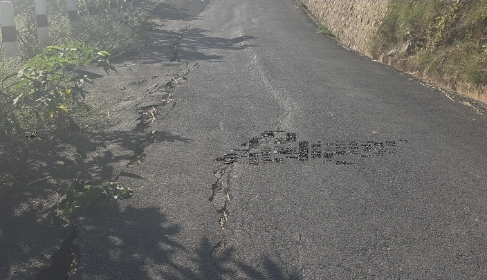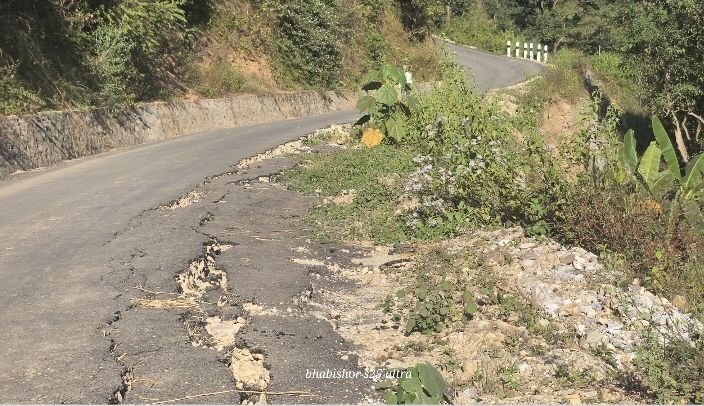 प्रदेश सरकारको झण्डै ५ करोड लगानीमा २०८२ असार महिनामा घामपानीको बेवास्ता गर्दै द्रुत गतिमा निर्माण सम्पन्न गरिएको सडक महिना महिना दिन नबित्दै ठाउँ-ठाउँमा चिरा परी कालोपत्रे सहित भित्री तह समेत खस्केर झण्डै एक फुट भन्दा तल भासिएको छ ।